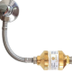 V2A Edelstahlauslauf mit schwarzer Kappe, einfach auf den Tisch oder Spüle zu stellen, komplettes Filtergerät mit am Anschluß drehbarem und mit Knickschutz versehenem grauen Anschlußschlauch aus Silikon 90 cm lang, Umlenkventil mit Innengewinde M 22 x 1, inkl. Adapter mit Außengewinde M 24 x 1 auf Außengewinde M 22 x1, inkl. Filterpatrone Carbonit GFP-Premium, bei vorhandenem drucklosen Boiler ist ein separater Wasserhahn erforderlich, an welchem dann der San Uno angeschlossen wird, nur mit Kaltwasser betreiben, nicht an eine Brausearmatur anschließen